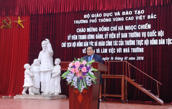 Sáng ngày 16/01/2018, Đồng chí Hà Ngọc Chiến - Uỷ viên TW Đảng - Uỷ viên Uỷ ban Thường vụ Quốc hội - Chủ tịch Hội đồng Dân tộc và Đoàn công tác của Thường trực Hội đồng Dân tộc đã về thăm và làm việc tại trường PT Vùng cao Việt Bắc.