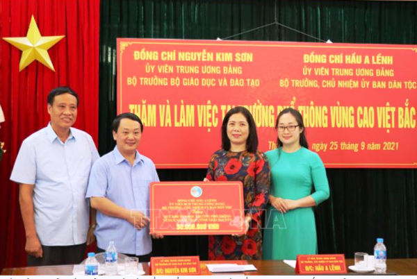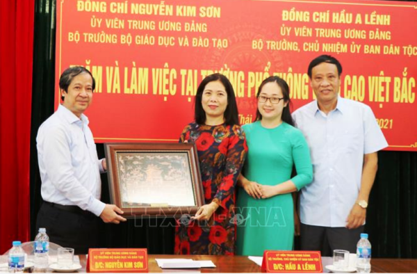 Nhân dịp này, nằm động viên, khích lệ thầy và trò Trường Vùng cao Việt Bắc bước vào năm học mới, Bộ trưởng Nguyễn Kim Sơn và Bộ trưởng Hầu A Lềnh đã tặng quà lưu niệm, khẩu trang y tế; đồng thời, ủng hộ cho quỹ khuyến học của nhà trường để giúp đỡ các em học sinh vượt khó học tốt.