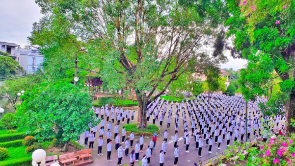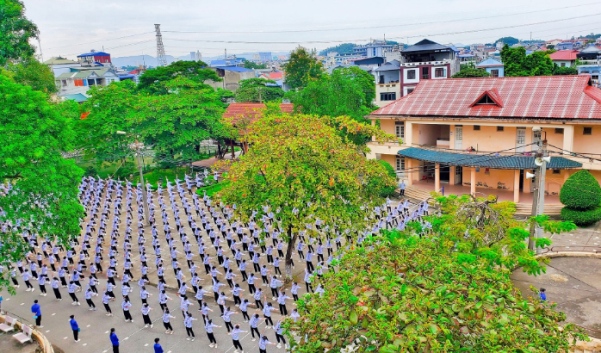Học sinh Trường Phổ thông Vùng cao Việt Bắc trong giờ thể dục giữa giờ