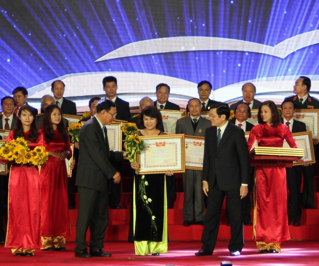 Vào tối 13/11 nhà giáo Đinh Thị Kim Phương, Bí thư Đảng uỷ, Hiệu trưởng nhà trường đã vinh dự được Chủ tịch nước phong tặng danh hiệu cao quý Nhà giáo nhân dân năm 2014. Thật tự hào biết bao trong 38 NGDN trong cả nước có sự hiện diện của Hiệu trưởng trường PT Vùng Cao Việt Bắc, đồng thời cũng là một trong số rất hiếm hoi các nhà giáo nữ được phong tặng danh hiệu NGND trong năm 2014 này.