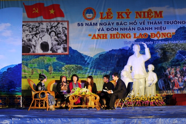 Tối 11/3/2015, Tại sân trường PT Vùng cao Việt Bắc đã diễn ra chương trình giao lưu, gặp gỡ các thế hệ cán bộ, giáo viên, học sinh nhân kỉ niệm 55 năm ngày Bác Hồ về thăm trường (13/3/1960 - 13/3/2015) và đón nhận danh hiệu Anh hùng Lao động. BBT xin trân trọng giới thiệu đến bạn đọc một số hình ảnh của chương trình. Mời các bạn cùng xem.