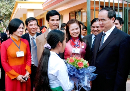 Bồi dưỡng HSG nhằm tạo nguồn cán bộ chất lượng cao cho đồng bào các dân tộc thiểu số là một nhiệm vụ quan trọng của Đảng ủy nhà trường. (Hiện nhà trường đã có 176 HSGQG và hàng nghìn HSG cấp trường, cấp tỉnh) Ảnh: Lãnh đạo nhà trường, các em HSG cấp tỉnh lớp 12 và GV luyện thi về thăm quê hương Chu Văn An