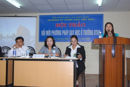 Đổi mới phương pháp dạy học ở trường DTNT là một nhiệm vụ trọng tâm được Đảng ủy quan tâm chỉ đạo, do vậy kết quả giảng dạy và học tập của nhà trường ngày càng được giữ vững và nângcao, đáp ứng với yêu cầu giáo dục trong giai đoạn mới. Ảnh: Một cuộc Hội thảo về đổi mới PPDH của Hội đồng khoa học nhà trường