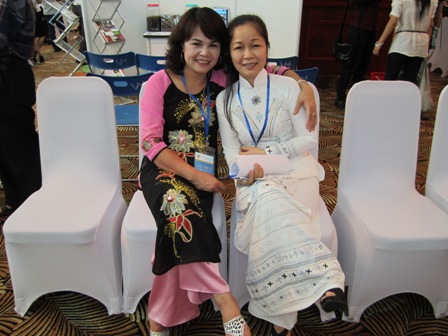 NGƯT Đinh Thị Kim Phương chụp ảnh lưu niệm với Đ/c Kiều Thị Bích Thủy - Chuyên viên TTVT& CGCN DHA Co.ltd