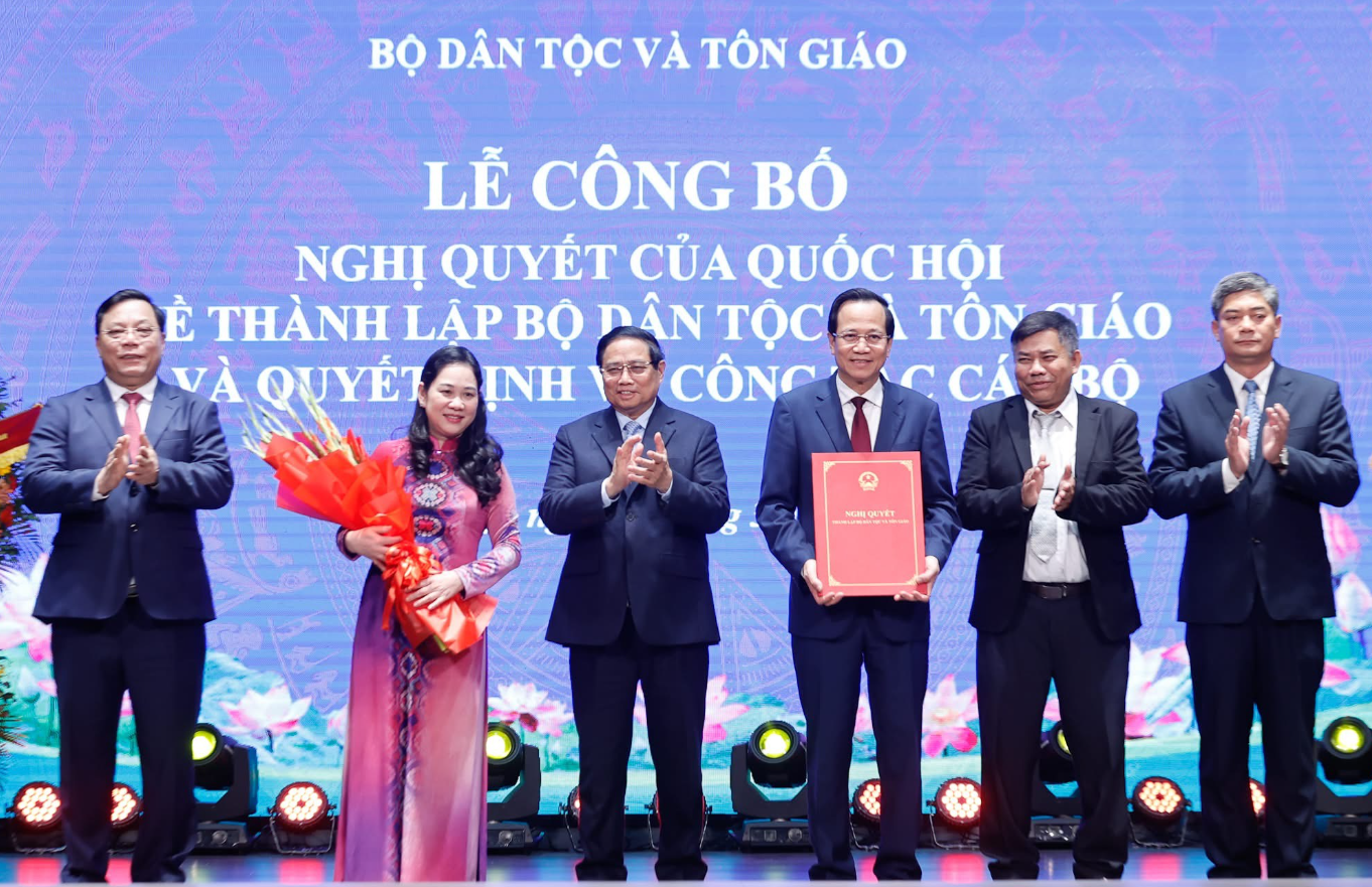 Trước đó, tại kỳ họp bất thường lần thứ 9, Quốc hội Khóa XV đã thông qua Nghị quyết số 176/2025/QH15 về cơ cấu tổ chức của Chính phủ nhiệm kỳ Quốc hội khóa XV, trong đó Bộ Dân tộc và Tôn giáo là một trong 17 bộ, cơ quan ngang bộ thuộc cơ cấu tổ chức của Chính phủ được thành lập trên cơ sở Ủy ban Dân tộc tiếp nhận thêm chức năng, nhiệm vụ, tổ chức bộ máy quản lý nhà nước về tôn giáo từ Bộ Nội vụ.