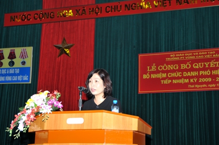 Tại lễ bổ nhiệm, đồng chí Lục Thúy Hằng – Phó Trưởng Phòng Tổ chức - Hành chính đọc quyết định của Bộ trưởng Bộ Giáo dục và Đào tạo về việc bổ nhiệm Thạc sĩ Vũ Huy Kỳ giữ chức vụ Phó Hiệu trưởng trường PT Vùng cao Việt Bắc tiếp tục nhiệm kỳ 2009 – 2014.