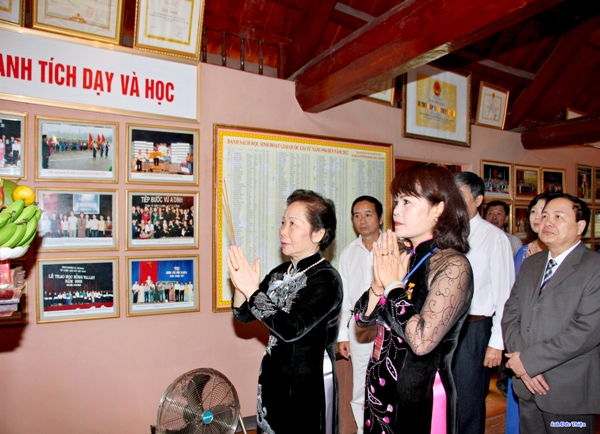 Nhân dịp này, Phó Chủ tịch nước Nguyễn Thị Doan cùng các đồng chí lãnh đạo Đảng và Nhà nước, Bộ Giáo dục và Đào tạo, các đại biểu, lãnh đạo trường đã thăm phòng truyền thống nhà trường.