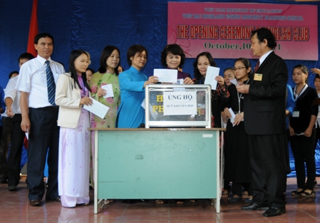 Trong buổi Lễ quyên góp ủng hộ năm nay, bước đầu nhà trường đã quyên góp được 12.122.500 đồng cho quỹ Hội. Đồng chí Đinh Thị Kim Phương mở màn lễ quyên góp với số tiền 2.000.000 đồng. Sau đó là phần quyên góp của các thầy cô và các em học sinh. Các em học sinh giỏi của trường năm học 2010-2011 đã dùng một phần tiền thưởng của mình để ủng hộ quỹ hội 1.200.000 đồng. Học sinh các lớp cũng tự quyên góp ủng hộ quỹ. Đặc biệt các em lớp 12A1 và 12A2 đã tự lập hòm phiếu riêng tại lớp và mỗi lớp đã quyên góp được 300.000 đồng cho quỹ Hội.