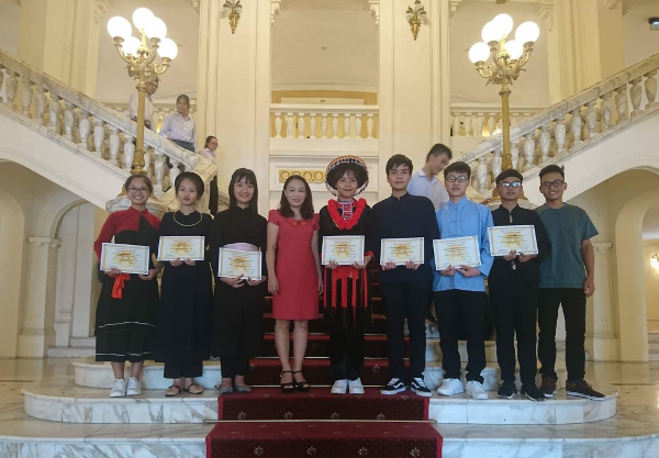 Khoảng 7 giờ sáng ngày 23/8/2018, chuyến xe của nhà trường xuất phát đi Thủ đô, chúng em gồm 7 học sinh: Bùi Việt Hà - 12A1, Trần Thị Thuỳ Linh - 12A1, Nông Xuân Hải - 12A2, Bàn Thị Trang - 12A2, Phan Thị Thu Phương - 12A12, Vương Thời Công - 11A16 và Nông Tuấn Long - 11A16 đã khoác trên mình bộ trang phục dân tộc đầy tự hào, đại diện cho học sinh trường PT Vùng cao Việt Bắc vinh dự nhận học bổng quý giá này.