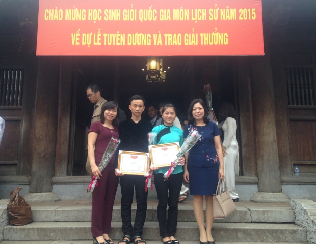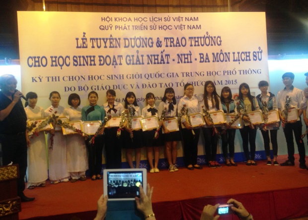 Sáng ngày 22 tháng 4 năm 2015, tại Văn Miếu - Quốc Tử Giám (Hà Nội), Quỹ Phát triển sử học Việt Nam (Hội Khoa học Lịch sử Việt Nam) tổ chức lễ tuyên dương và trao thưởng cho 130 học sinh đoạt giải kỳ thi chọn học sinh giỏi Quốc gia môn Lịch sử khối THPT, do Bộ Giáo dục và Đào tạo tổ chức năm 2015.