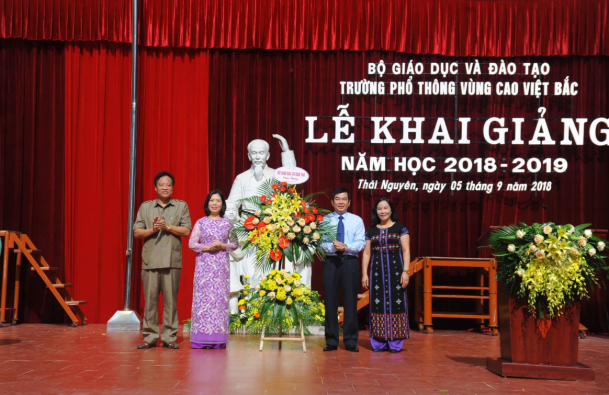 Đến dự lễ Khai giảng có đồng chí Trần Ngọc Sơn - Vụ trưởng vụ Giáo dục dân tộc, đồng chí đã biểu dương những thành tích mà thầy và trò trường PT Vùng cao Việt Bắc đã đạt được trong năm học vừa qua. Thay mặt đoàn Đại biểu về dự Lễ Khai giảng, đồng chí Trần Ngọc Sơn đã gióng lên hồi trống khai trường. Tiếng trống rộn vang như báo hiệu một năm học đầy ý nghĩa với thầy và trò trường PT Vùng cao việt Bắc.