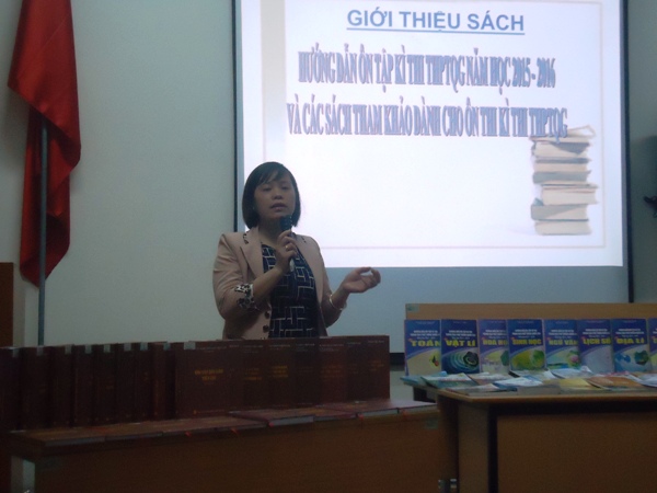 Ngay đầu buổi sinh hoạt, các thành viên CLB đã được cô Cà Thị Thùy Linh giới thiệu những cuốn sách tham khảo rất bổ ích không chỉ dành cho các học sinh khối 12, DBĐH trong ôn luyện thi kì thi THPT Quốc gia năm 2015 - 2016 mà những cuốn sách này còn rất hữu ích cho các học sinh khối 9, 10, 11 trong việc khắc sâu những kiến thức đã học qua các chuyên đề, các đề thi.