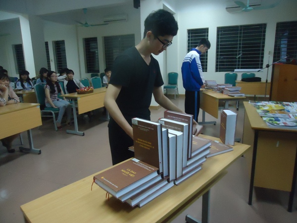 Phần tiếp theo của buổi sinh hoạt, các thành viên được giới thiệu 46 cuốn sách do Hội văn nghệ dân gian Việt Nam - Dự án công bố, phổ biến tài sản văn hóa, văn nghệ dân gian Việt Nam gửi tặng Thư viện nhà trường.