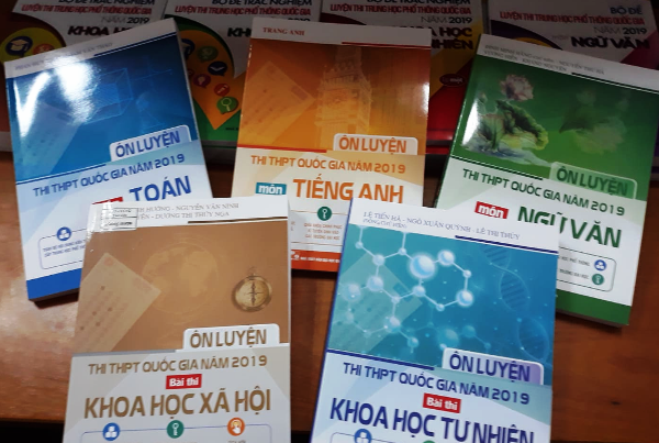 1. Bộ sách: “Bộ đề luyện thi THPT Quốc gia năm 2019” của Nhà xuất bản Giáo dục Việt Nam, gồm 7 quyển: Toán, Ngữ văn, Tiếng Anh, Khoa học tự nhiên tập 1, 2 và Khoa học xã hội tập 1, 2.
