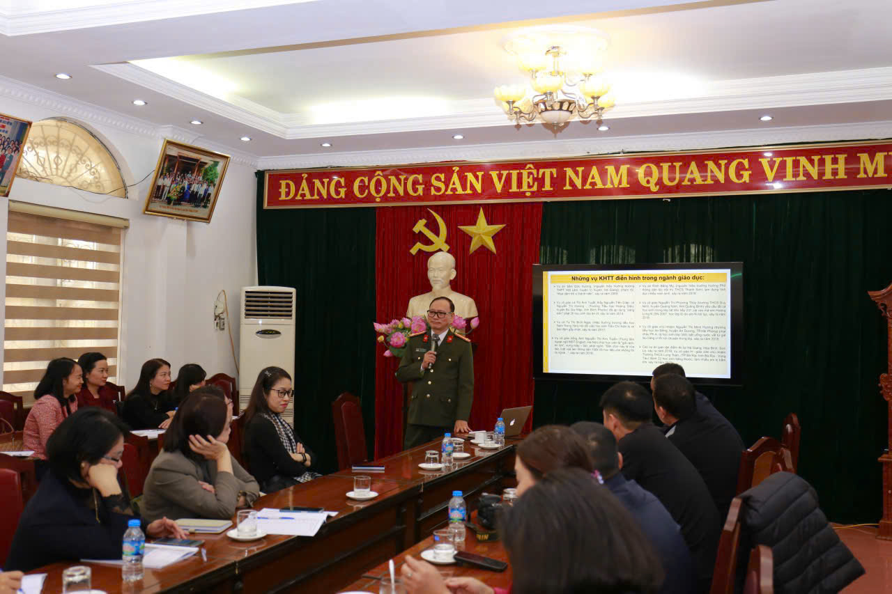 Tiếp đó, Thượng tá, Tiến sĩ Đào Trung Hiếu đã có buổi trao đổi chuyên sâu với cán bộ, giáo viên nhà trường thông qua chuyên đề “Ứng phó khủng hoảng truyền thông trong ngành giáo dục và nâng cao kỹ năng xử lý tình huống tâm lý học đường”. Từ những phân tích sát thực tiễn, giàu tính chuyên môn và kinh nghiệm thực chiến, chuyên gia đã giúp đội ngũ cán bộ, giáo viên nâng cao bản lĩnh nghề nghiệp, chủ động hơn trong xử lý các tình huống tâm lý học sinh và khủng hoảng truyền thông nhạy cảm trong bối cảnh giáo dục hiện nay.
