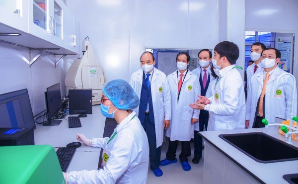 Ủy viên Bộ Chính trị, Chủ tịch nước Nguyễn Xuân Phúc thăm Phòng thí nghiệm an toàn sinh học cấp 3, Phòng thí nghiệm Trọng điểm Công nghệ sinh học Thú y của Học viện Nông nghiệp VN.