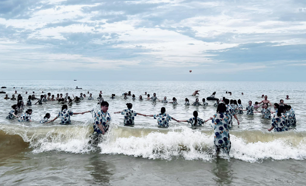 Chiều hôm ấy (12/8/2023), dẫu còn chút mệt mỏi vì đường xa nhưng chúng tôi vẫn ngập tràn năng lượng trước vẻ đẹp của biển Sầm Sơn. Tập thể lớp chúng tôi - A17k64 đã tổ chức các trò chơi Team building như “Nhảy bao bố”, “Đồng lòng tát biển Đông”... trong sự vui vẻ, đoàn kết, nhộn nhịp với những tiếng cười ròn tan, những tràng pháo tay rộn rã.