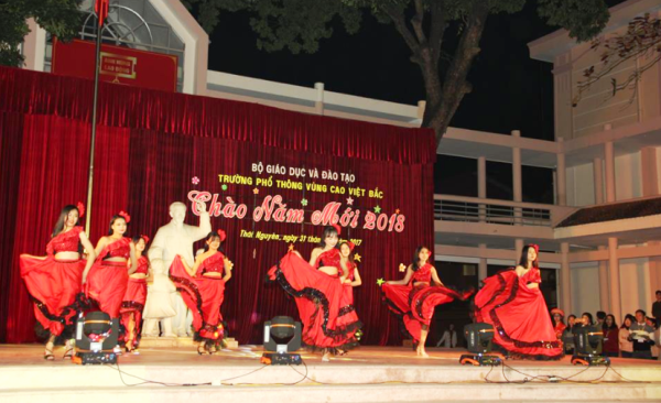 Chào năm mới 2018 không chỉ đặc biệt bởi “Hội chợ Tết Vùng cao” mà còn được tô điểm bởi đêm văn nghệ ấn tượng. Hòa chung tiếng reo hò rộn rã cùng ánh đèn điện sân khấu lung linh đầy sắc màu là những giọng hát ngọt ngào, da diết, có khi sôi động. Những lời ca tiếng hát cất lên như thay cho lời chúc mừng năm mới sâu sắc và chân thành nhất. Xuyên suốt chương trình, các tiết mục văn nghệ của các vị khách mời, các cựu học sinh đã tạo cho khán giả những sự thích thú, ngưỡng mộ bởi giọng hát sôi nổi trẻ trung, phong cách biểu diễn tự tin và chuyên nghiệp.